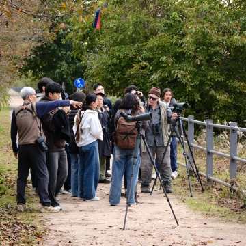 참가자들은 막 도착한 두루미 떼가 착지할 곳을 찾아 비행하는 장면을 직접 관찰하며 큰 감동을 받았다.